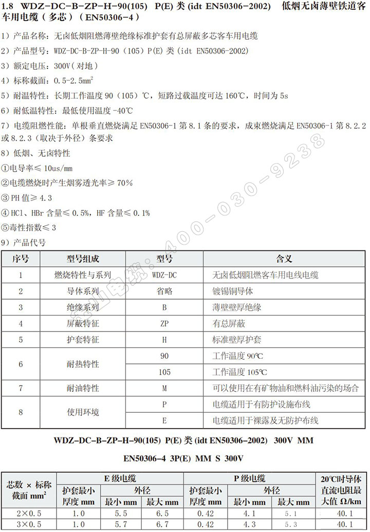 以下是本產品WDZ-DC-B-ZP-H-90(105)帶總屏蔽多芯動車組電纜的詳細參數: